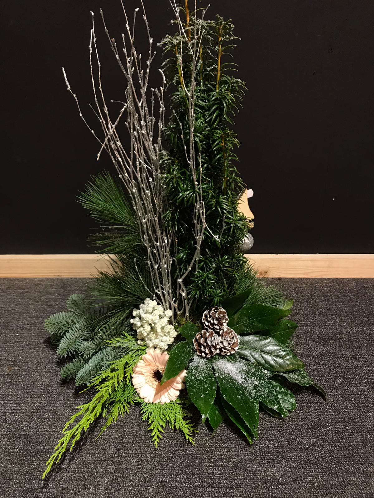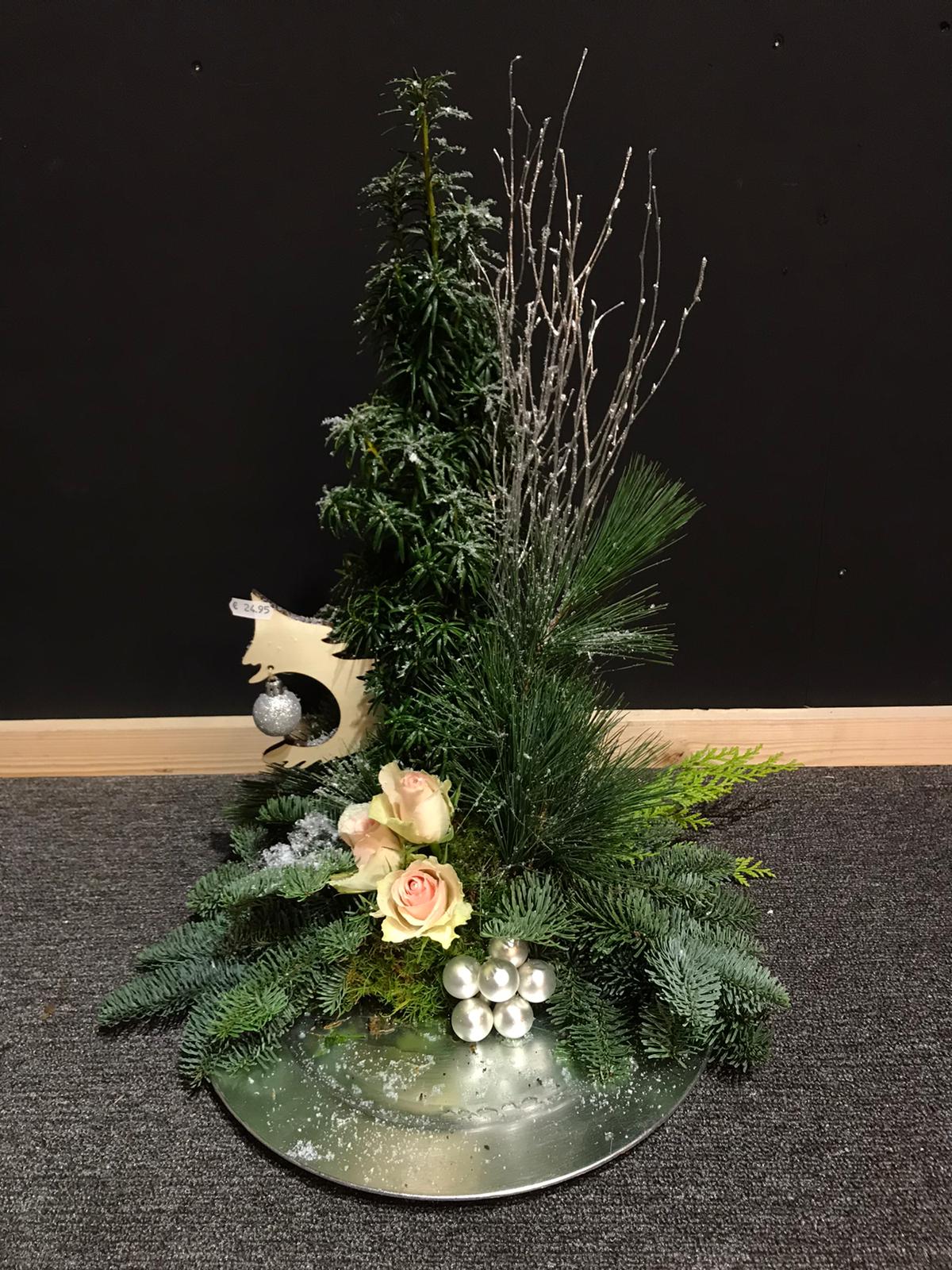 Een prachtig zalm kleurig kerststuk .